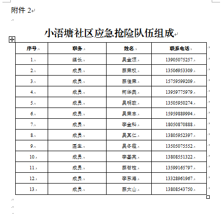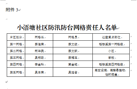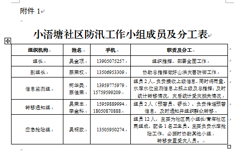 附件:1.小浯塘社区防汛工作小组成员及分工表