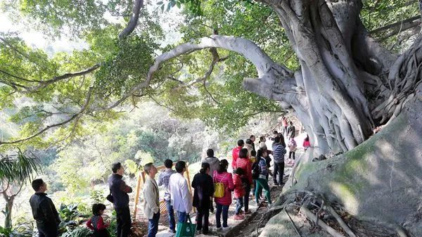 在这对夫妻树旁边、顺正大王庙后还长出一对樟树与榕树共生的“情侣树”,两树根部相并、树干相依、树冠相连,也有100余年历史了。