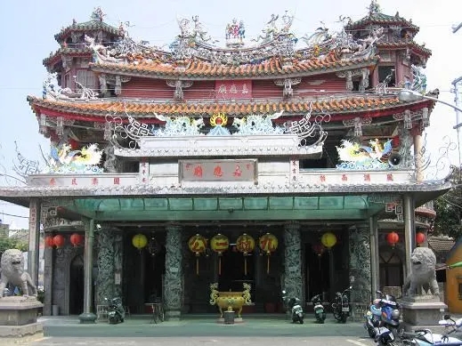 三公宫规模不算高大,但庙宇建筑别具特色,特别是殿顶的装饰相当华丽。前后两殿的正脊、戗脊上,堆塑着彩瓷剪粘的双龙戏珠、龙凤呈祥、八仙过海、飞禽走兽、奇花异果,色彩鲜艳夺目,造型生动精巧,一如堆缀珠翠的冕旒凤冠,很接近现代台湾庙宇的装饰风格。