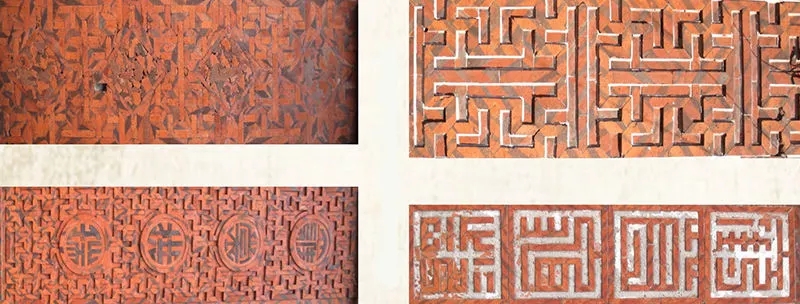从十一丁至二十五丁,在丁牌上,以万字形体现,丁牌中常嵌入圆团字或方团字、及人物飞禽走兽等砖雕。
