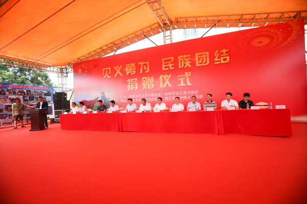 9月16日上午,福建省见义勇为基金会、泉州市见义勇为协会、晋江市见义勇为协会、深沪镇人民政府共同举办了“见义勇为民族团结”主题捐赠仪式。中华见义勇为基金会常务副理事长李顺桃,省“工委会”副主任、见义勇为基金会会长傅镛堃,中华见义勇为基金会秘书长帅福贵,泉州市公安局党委委员、晋江市副市长、“工委会”主任、公安局长李森建,泉州市“工委会”副主任、公安局党委委员、政治部主任刘南辉,中华见义勇为基金会办公室副主任郭建光,中国马业协会医药委员会秘书长王煜,省见义勇为基金会秘书长朱永合,泉州市见义勇为协会会长李永木,晋江市“工委会”办公室主任、公安局党委委员、政工室主任庄飞虎,晋江市见义勇为协会会长陈永聪,晋江市深沪镇党委副书记王斌斌,巴哈木拉提?铁列吾哈孜先生,省见义勇为基金会宣传部主任陈秀梅,及见义勇为志愿者参加。仪式由刘南辉主任主持。