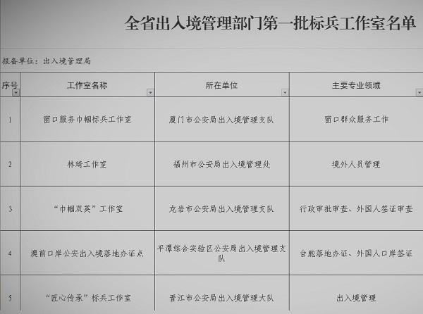近期,按照“工作理念先进、练兵成效明显、专业能力突出、具有可复制可推广经验做法”的标准,出入境管理大队“匠心传承”标兵工作室荣获首批“全省公安出入境管理部门标兵工作室”称号,是全省唯一获此殊荣的县级出入境部门。此次确立的标兵工作室,是省局综合衡量、好中选优的结果,是对晋江出入境管理工作的褒扬与肯定。