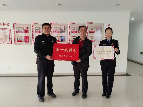 近日,泉州市总工会下发《泉州市总工会关于命名“泉州市工人(五一)先锋号”的决定》,决定授予我局交警大队驾驶人管理中队等46个机关事业集体“泉州市五一先锋号”荣誉称号,并授予牌匾。