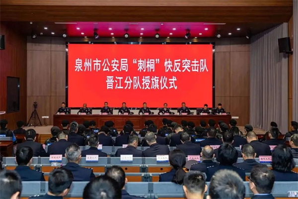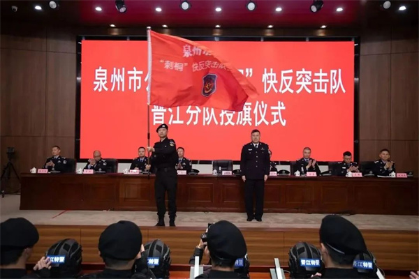 泉州市公安局“刺桐”快反突击队晋江分队授旗仪式在晋江举行