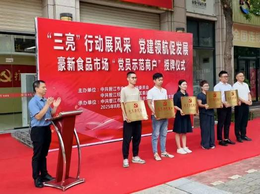 加强诚信经营文化建设,树立行业新风。罗山所积极参与晋江市食品产业链党委、经济开发区园区委员会联合举办的“党员示范商户”授牌活动,以党建引领诚信经营。经综合考评,11家诚信经营、示范作用突出的党员商户获授“党员示范商户”称号。活动中,罗山所协助推动“亮身份、亮岗位、亮作为”落地,组织商户代表观摩“食力先锋”党建馆及示范商户门店,引导党员商户当好“红色标杆”,带动全体商户树立“安全为先、诚信为本”理念,推动形成“党员示范、全员争优”的诚信经营氛围。