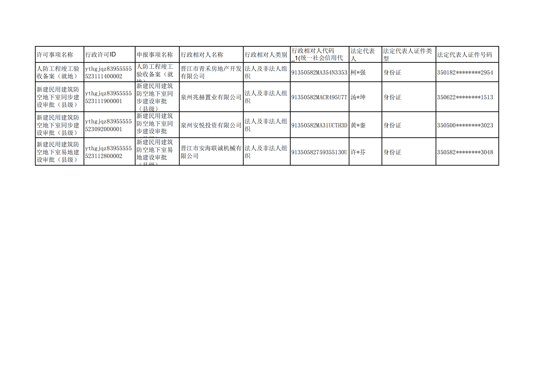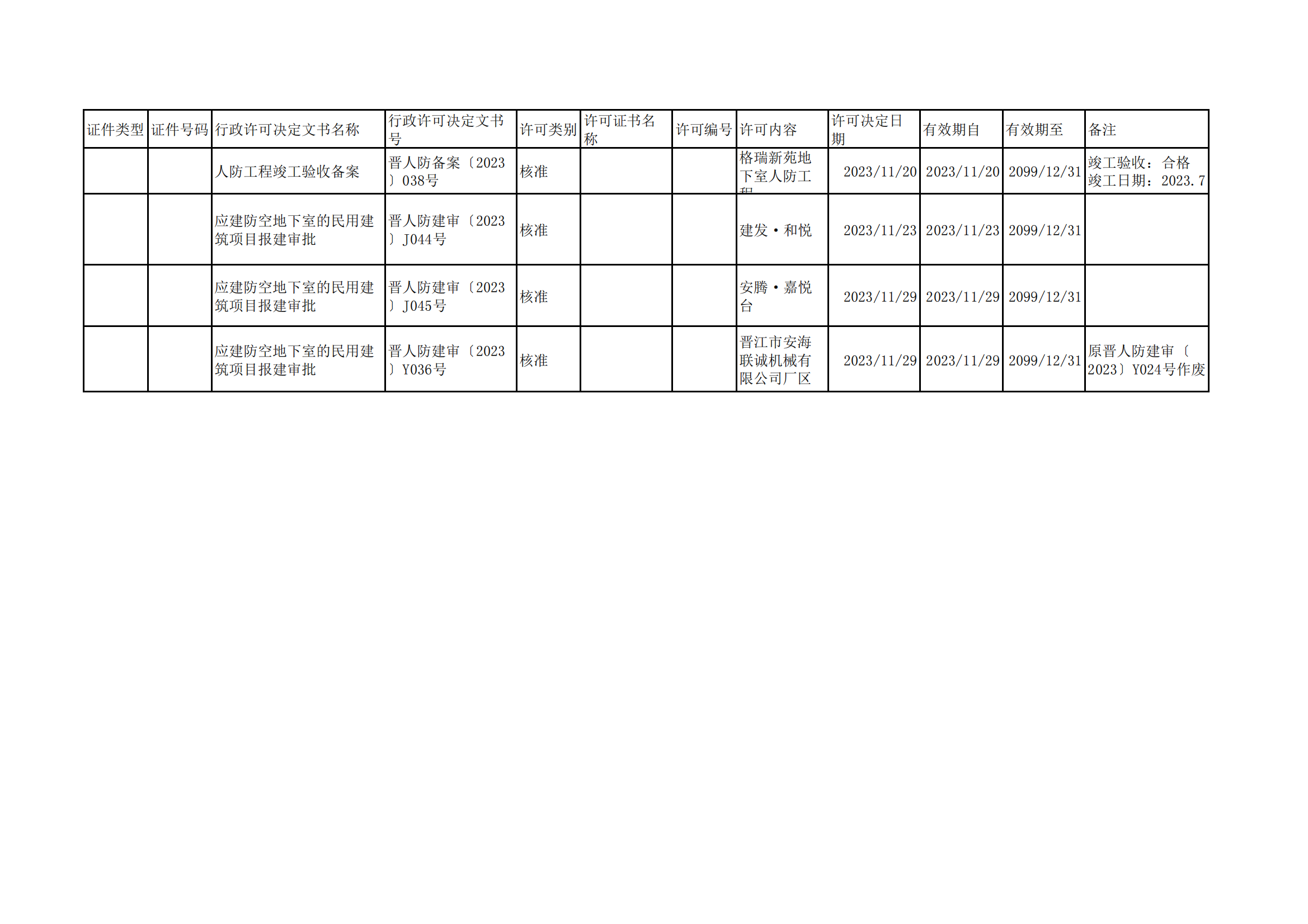 晋江人防2023年11月行政许可和竣工备案信息公示(2)