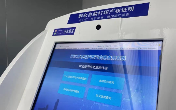 前往晋江市政务服务中心三楼不动产登记服务区,在自助机上刷居民身份证并经人脸核验后查询打印。