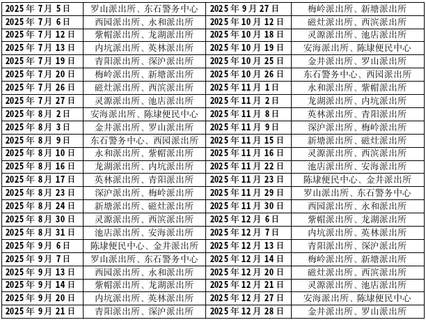2025年下半年晋江市户籍窗口“周末办”开放排期