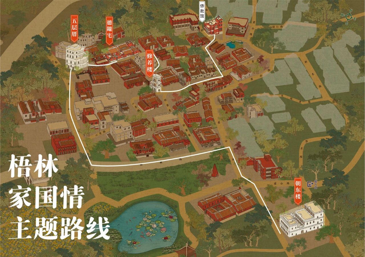 游玩路线:朝东楼——五层厝——德鑨宅(德鑨五间张、三间张)——修养楼(枪楼)——侨批馆