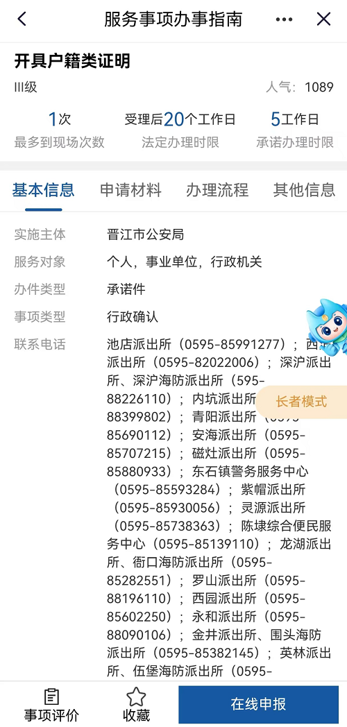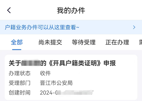 【晋江市行政服务中心管委会】开具户籍类证明掌上办流程