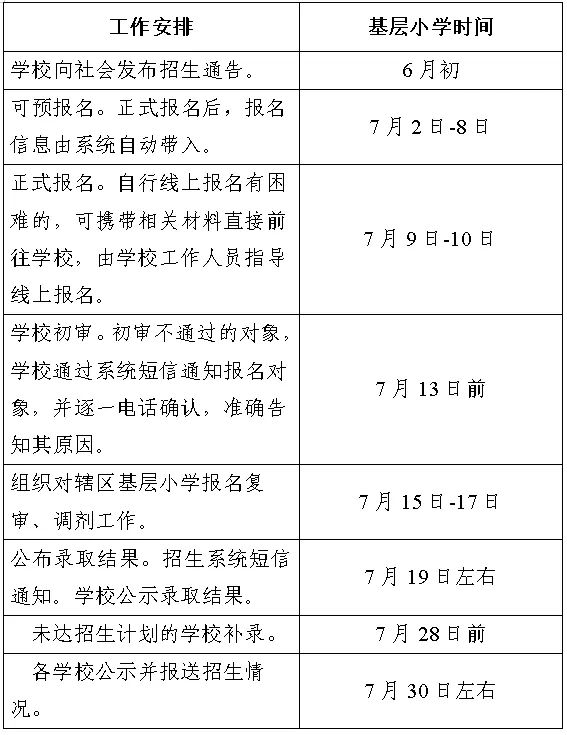 今年小学全面实行“入学一件事”网上报名。具体时间安排如下,任何学校均不得提前招生。若未能在规定时限到线上报名的,由教育行政部门引导到周边有剩余学位的公、民办学校就读。