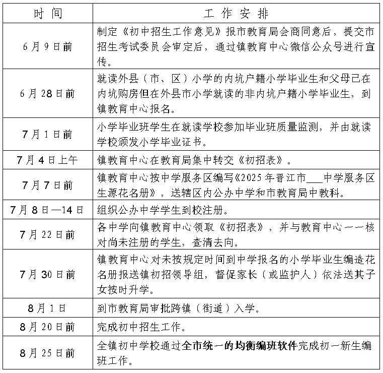 2025年初中招生工作安排表