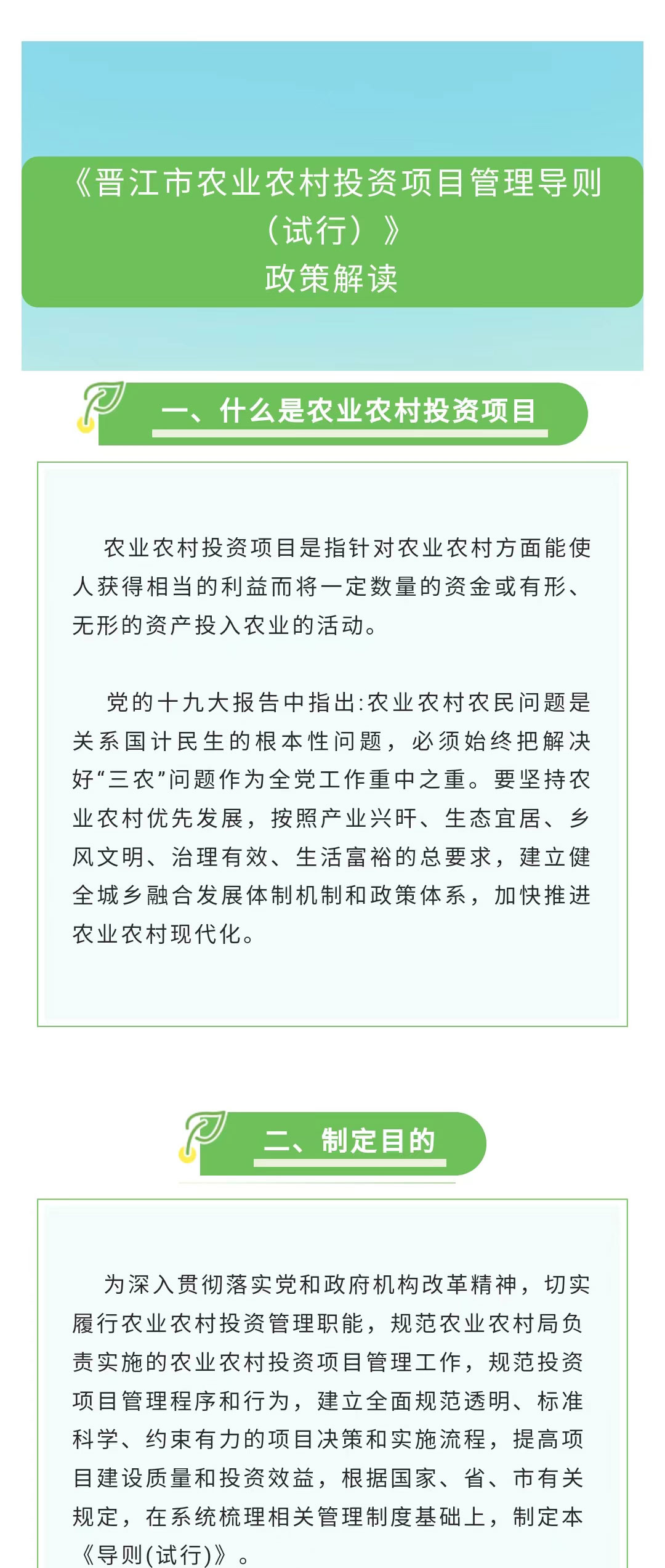 《晋江市农业农村投资项目管理导则(试行)》政策解读