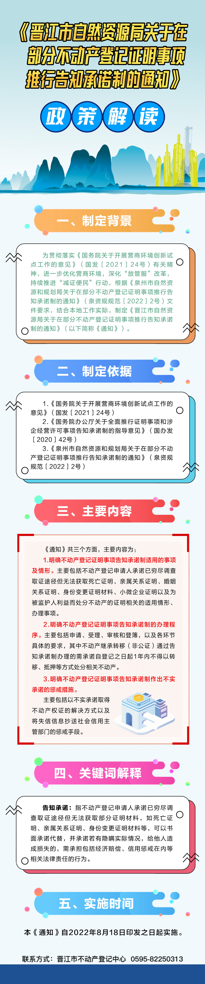 - 晋江市自然资源局关于在部分不动产登记证明事项推行告知承诺制的通知2022-08-18