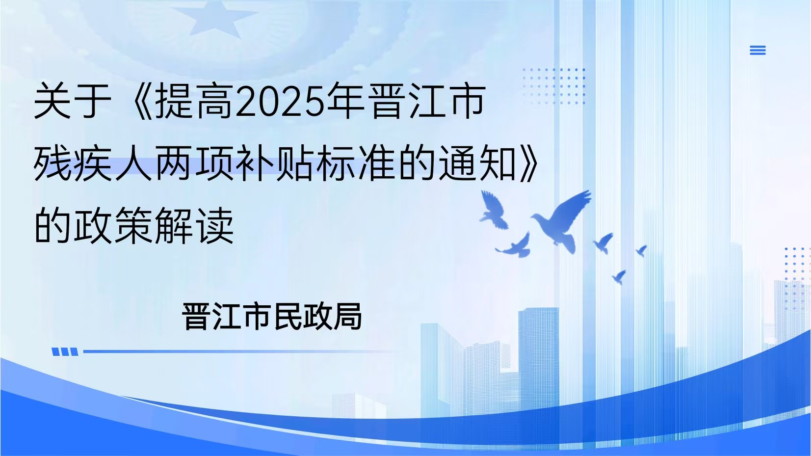 【图解】关于《晋江市民政局 晋江市财政局 晋江市残疾人联合会关于提高2025年残疾人两项补贴标准的通知》的政策解读