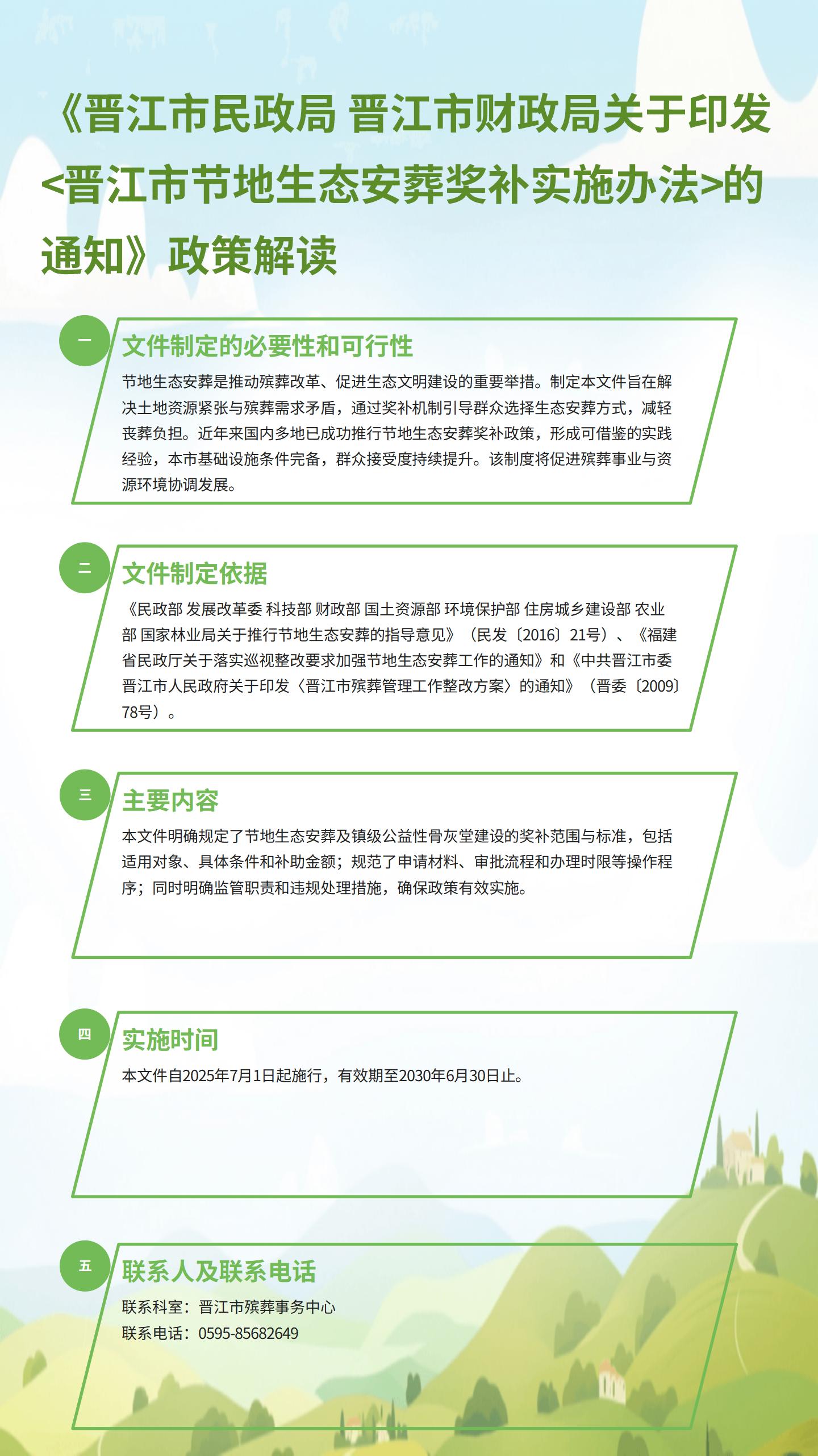- 《晋江市民政局 晋江市财政局关于印发<晋江市节地生态安葬奖补实施办法>的通知》政策解读2025-06-12