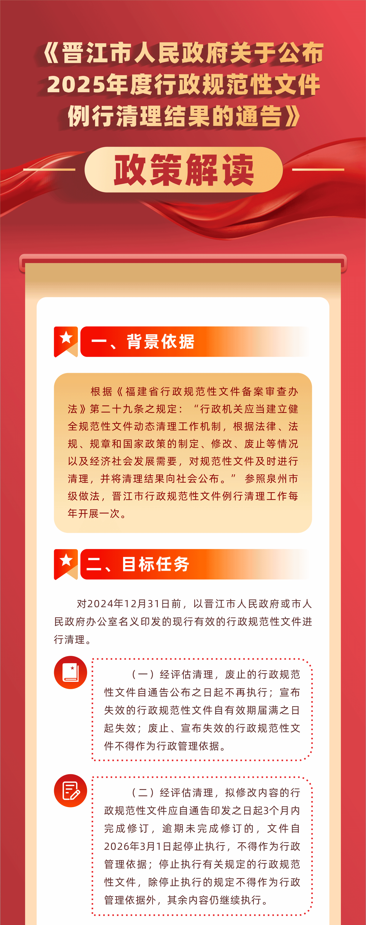 【图解】《晋江市人民政府关于公布2025年度行政规范性文件例行清理结果的通告》政策解读