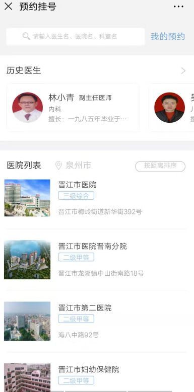 “健康晋江便民服务平台”,覆盖全市所有公立医疗卫生机构统一在线预约挂号、在线问诊、智能导诊、就诊卡充值、检查检验报告查询、个人健康档案和医疗健康资讯浏览等功能,让“数据跑”代替“群众跑”,实现医疗便民、惠民的目标。