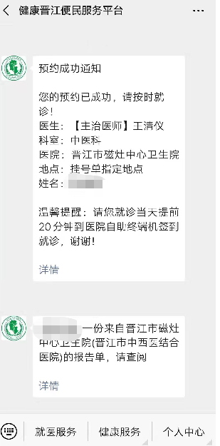 有就医需求的群众可关注“健康晋江便民服务平台”中的“便民服务”菜单进行预约。