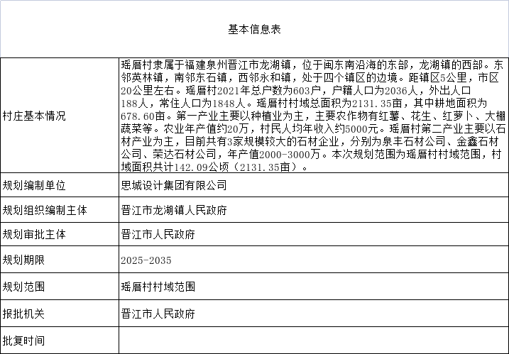 项目名称:《晋江市龙湖镇瑶厝村村庄规划修编(2025-2035年)》