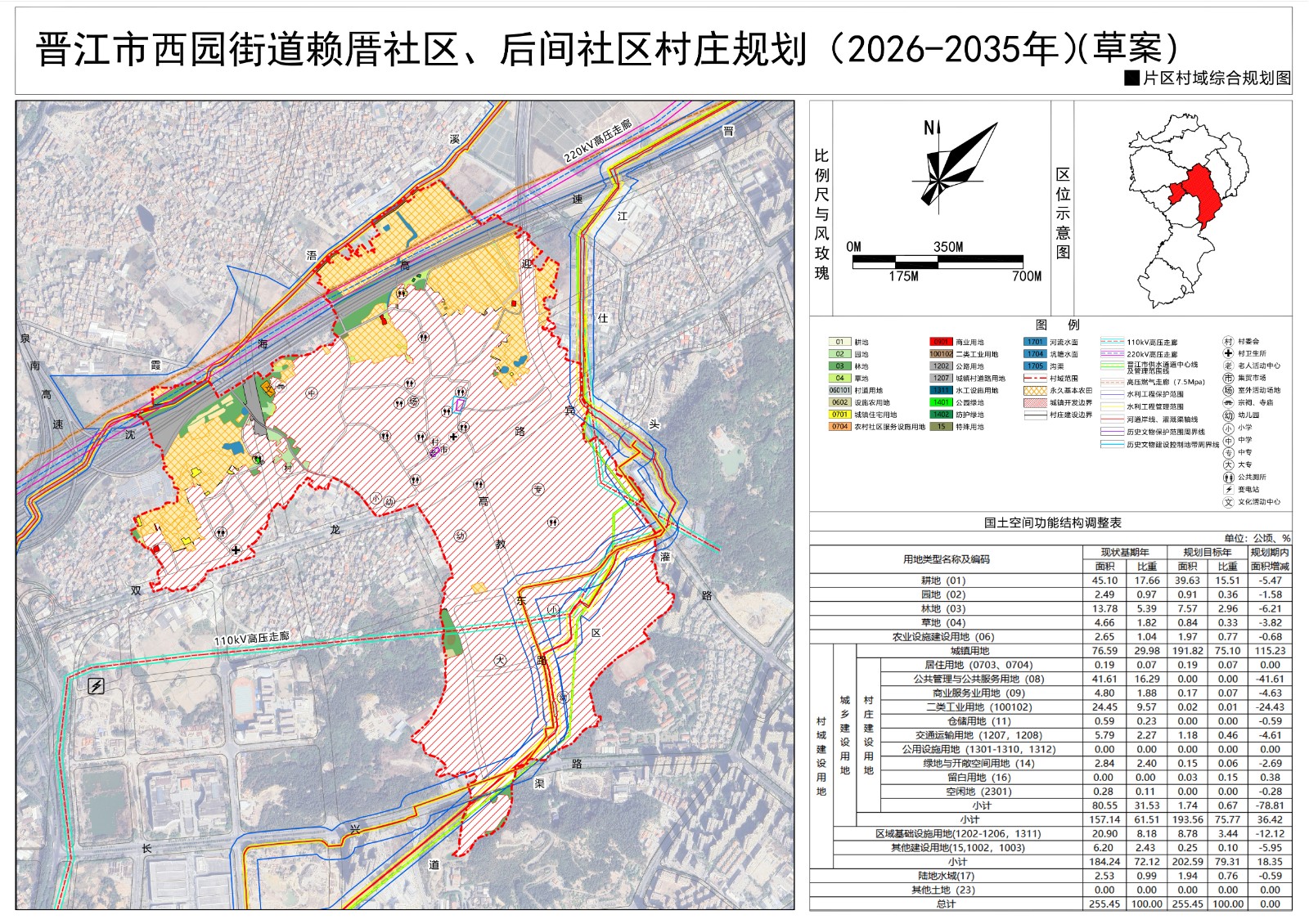 因城市发展建设、国土空间管理和使用需要,组织编制了《晋江市西园街道赖厝社区、后间社区村庄规划(2026-2035年)》方案。规划方案于2026年3月17日由我局组织部门和专家评审并审查通过,拟提报晋江市人民政府批准。现根据《中华人民共和国城乡规划法》,将规划草案予以批前公告、征求公众意见(最终图纸以批复为准)。具体如下: