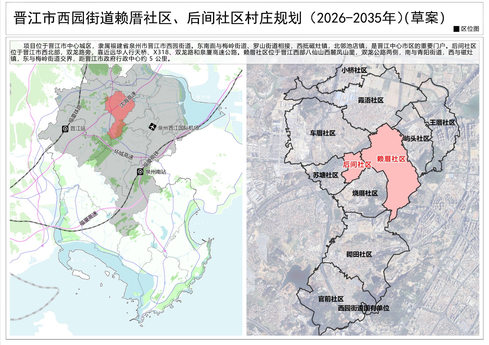 项目名称:《晋江市西园街道赖厝社区、后间社区村庄规划(2026-2035年)》