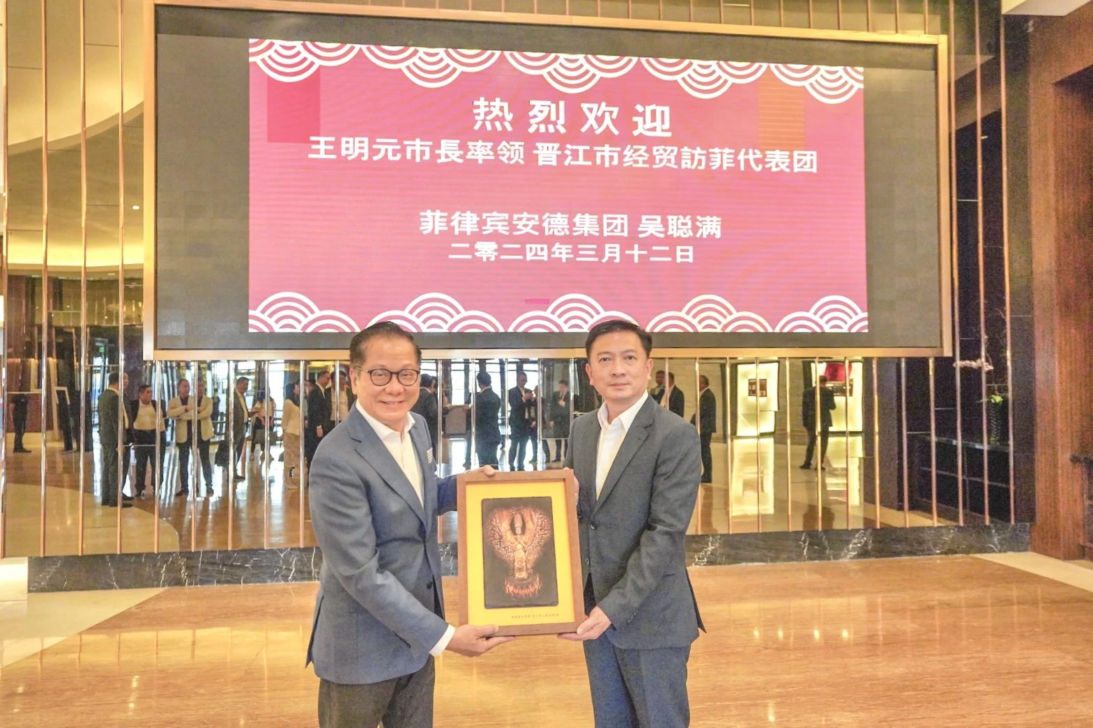 在菲期间,晋江市经贸交流团还先后拜访陈祖昌、吴聪满、施汉生、施恭旗、施东方、姚金镇、张伟廉等著名旅菲侨领、企业家,与当地商会、总会等侨亲开展座谈交流。