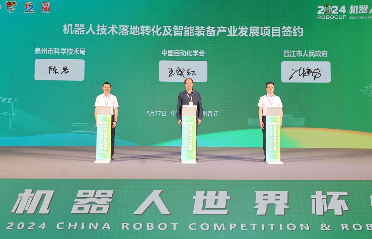 5月17日,2024RoboCup机器人世界杯中国赛开幕式在晋江国际会展中心举行。中国科学院院士、西安交通大学教授管晓宏,泉州、晋江市领导汪志红、王明元、林仁达、许宏程、张健龙参加开幕式。