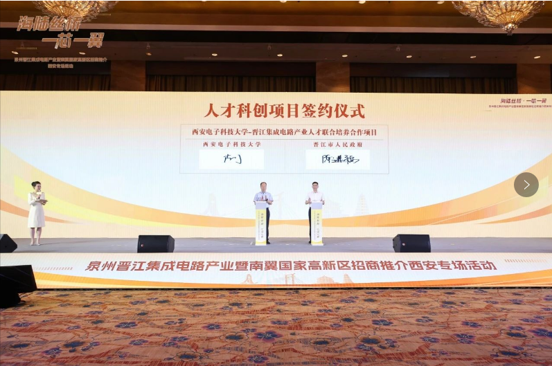 会上,晋江(西安)离岸创新中心、西安电子科技大学—晋江半导体产业人才科创基地正式揭牌,“晋全力 芯服务”晋江集成电路“单一窗口”服务平台正式启动。此次离岸中心、产业人才科创基地和服务窗口的揭牌和启动,有助于更好地链接晋江与西安两地的创新资源,将集聚更多西安创新项目和人才来晋落地,把晋江优质的营商环境、招商服务带到人才集聚“一线”。