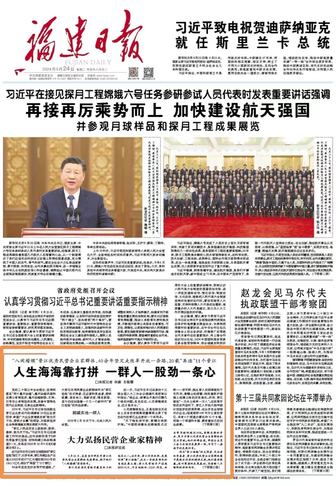 9月23日,省委宣传部发布晋江优秀民营企业家群体先进事迹,授予他们“八闽楷模”荣誉称号。