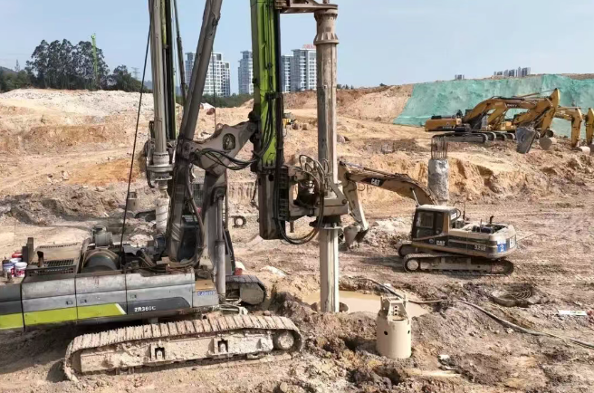 走进晋江未来产业加速器项目(一期)项目工地,多台打桩机、挖掘机等大型机械正在繁忙作业,现场一派片热火朝天。工人们分组作业,全力推进桩基工程和土方工程的施工。