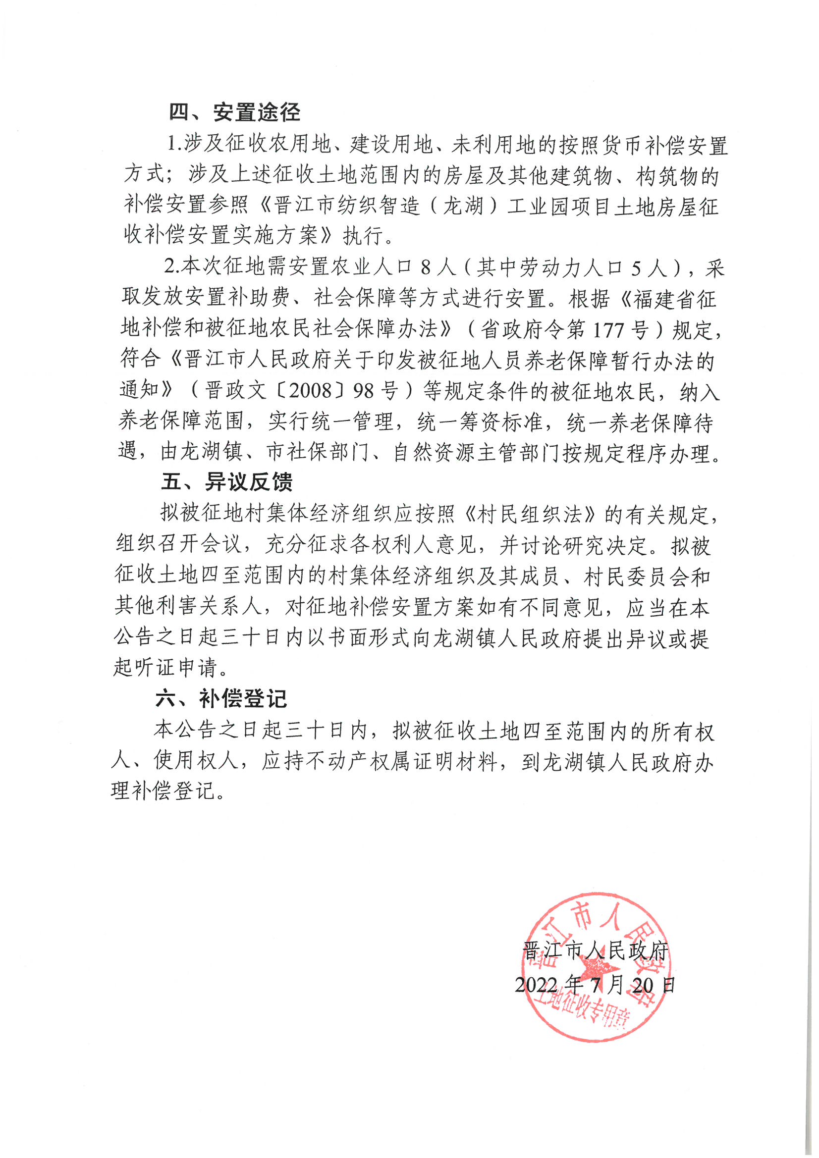 (晋征安告〔2022〕61号)晋江市人民政府关于预申请人福建百宏高新材料实业有限公司地块三项目拟征地补偿安置方案的公告_页面_2