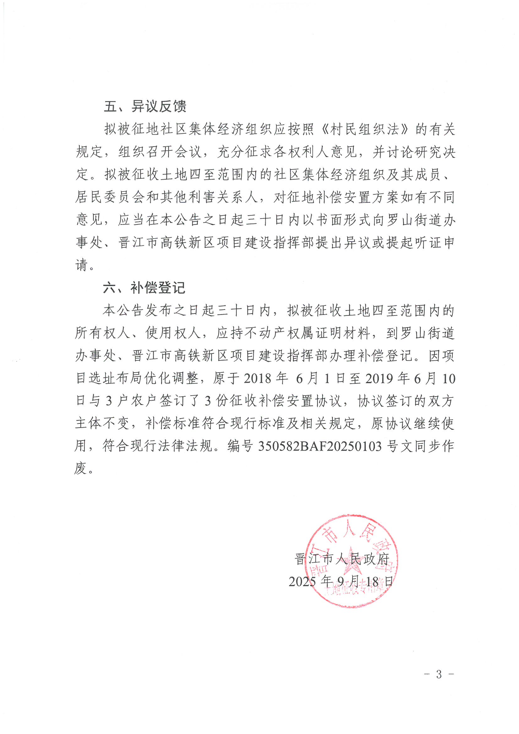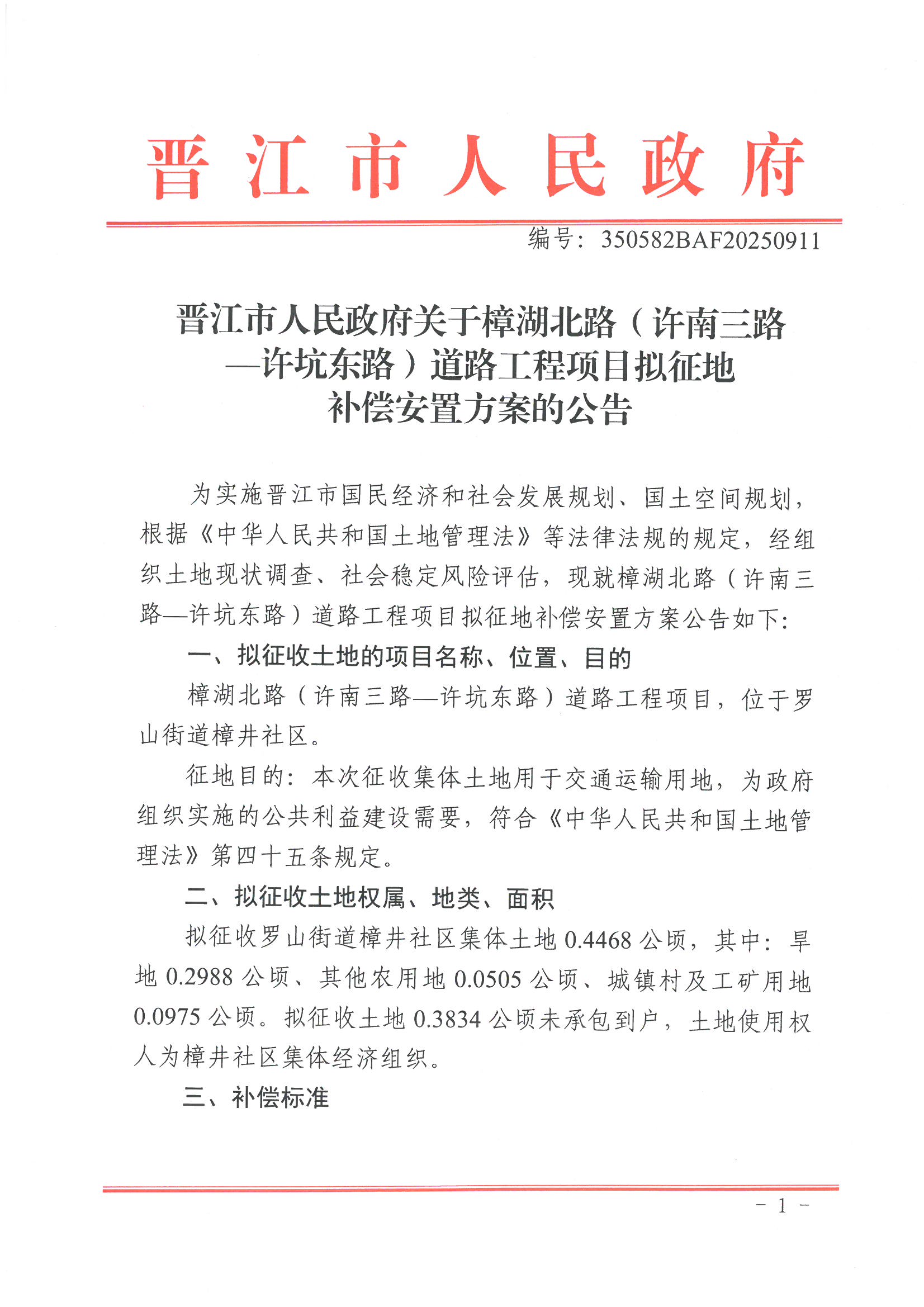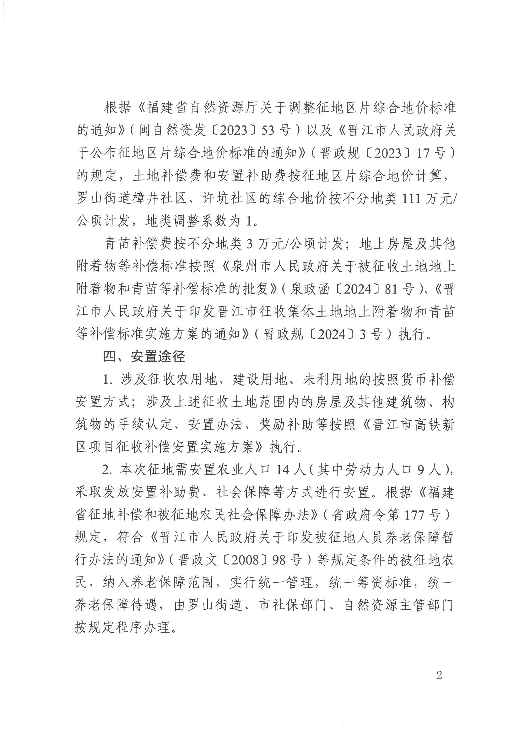晋江市人民政府关于樟湖北路(许南三路—许坑东路)道路工程项目拟征地补偿安置方案的公告