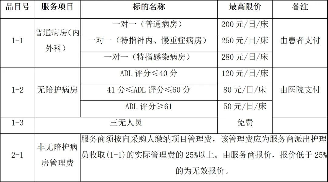注:1.服务商须根据以上护理单价基准数进行统一折扣报价。根据自身实际情况,报出一个最合适的折扣率。