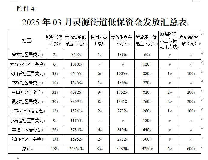 附件:1.2025年03月灵源街道城乡低保金、用电优惠金发