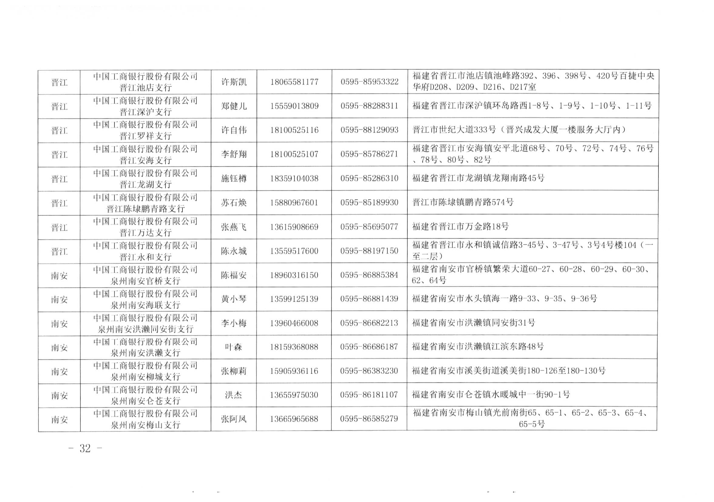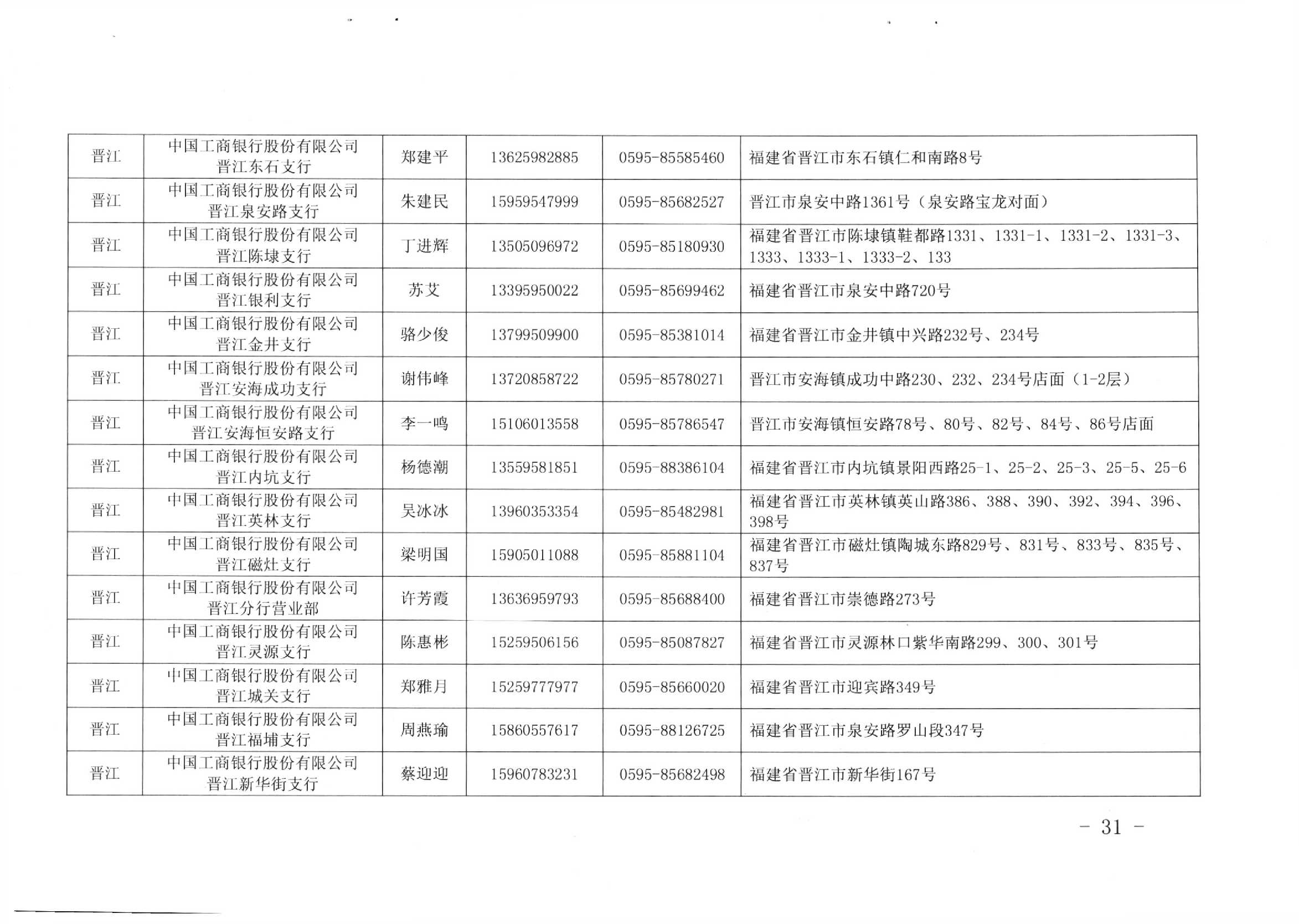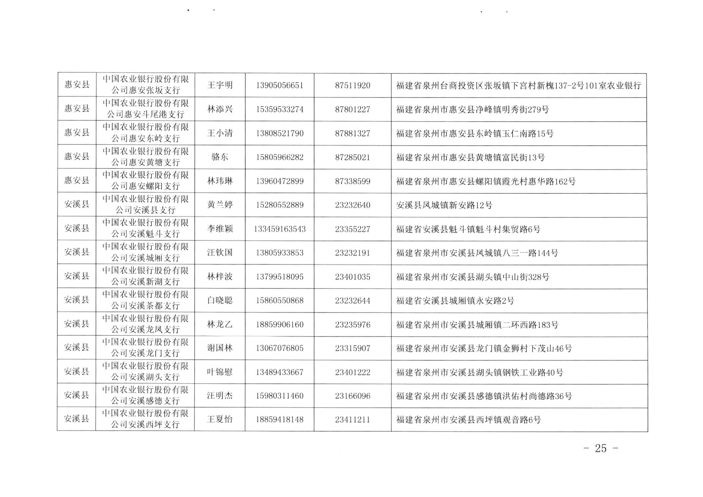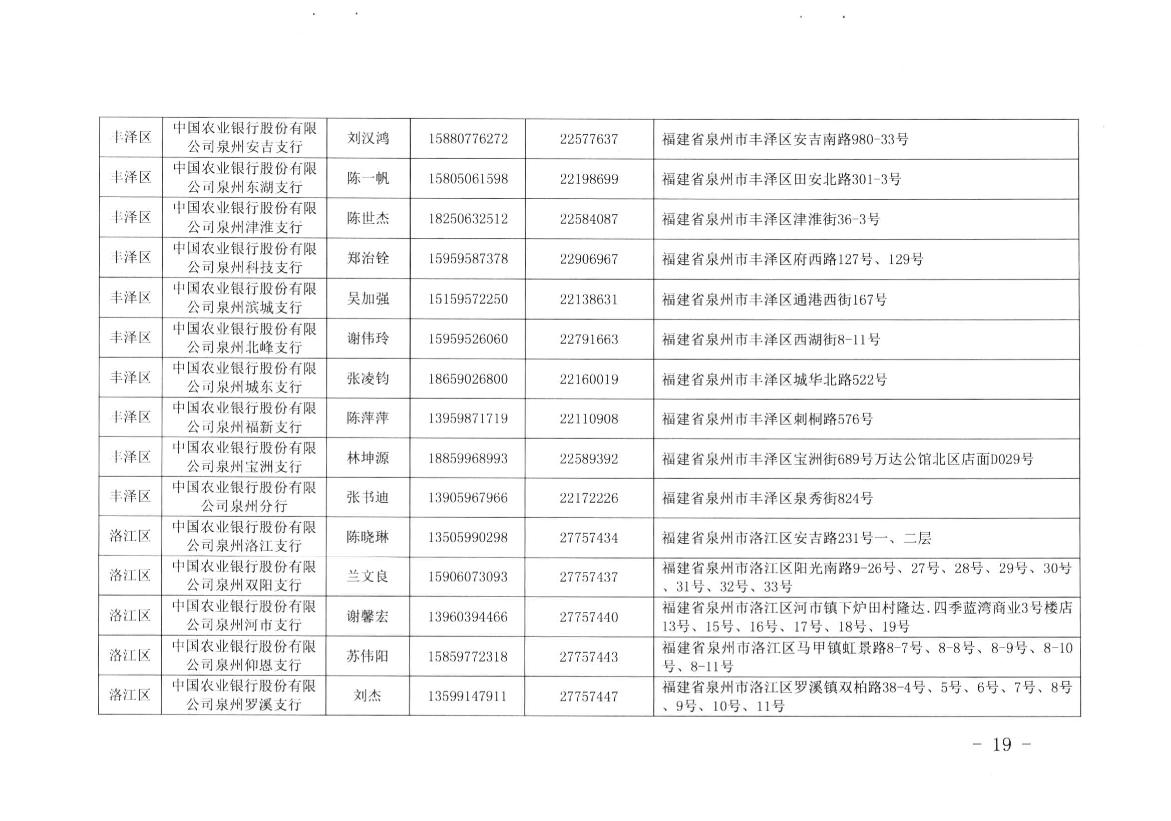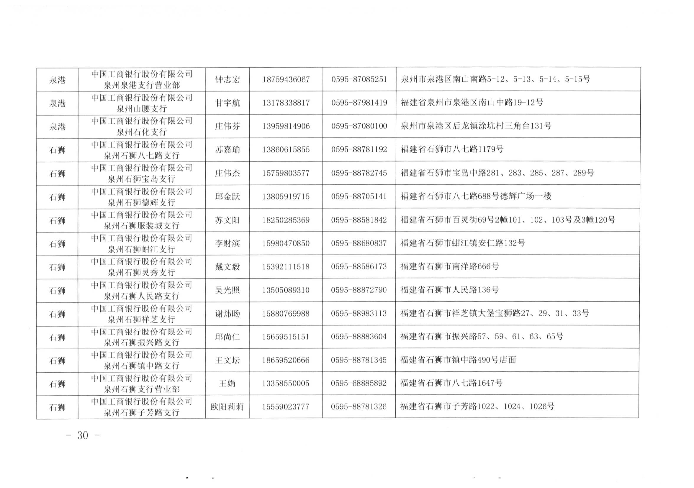 中国农业银行泉州分行、兴业银行泉州分行、中国工商银行泉州分行。