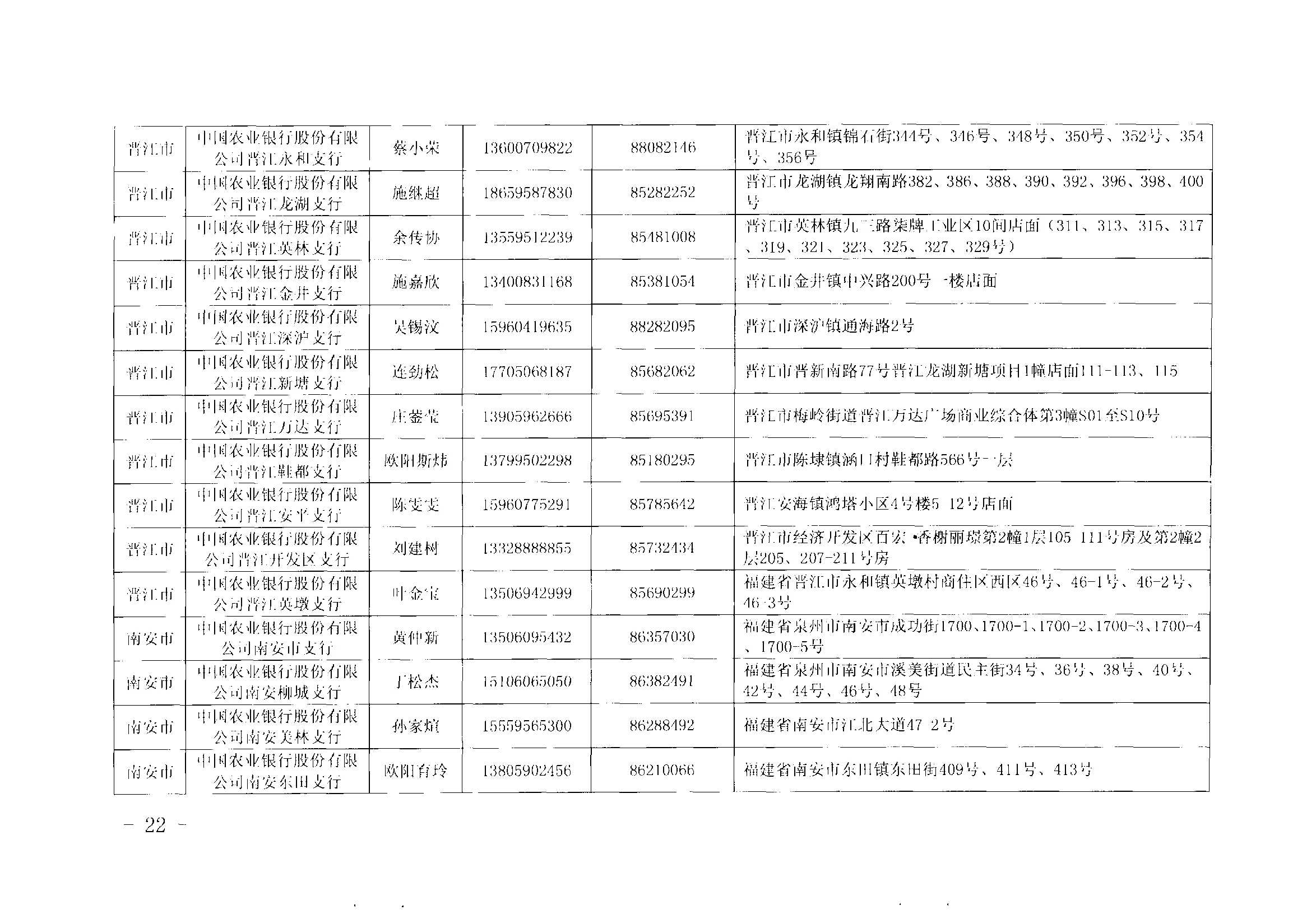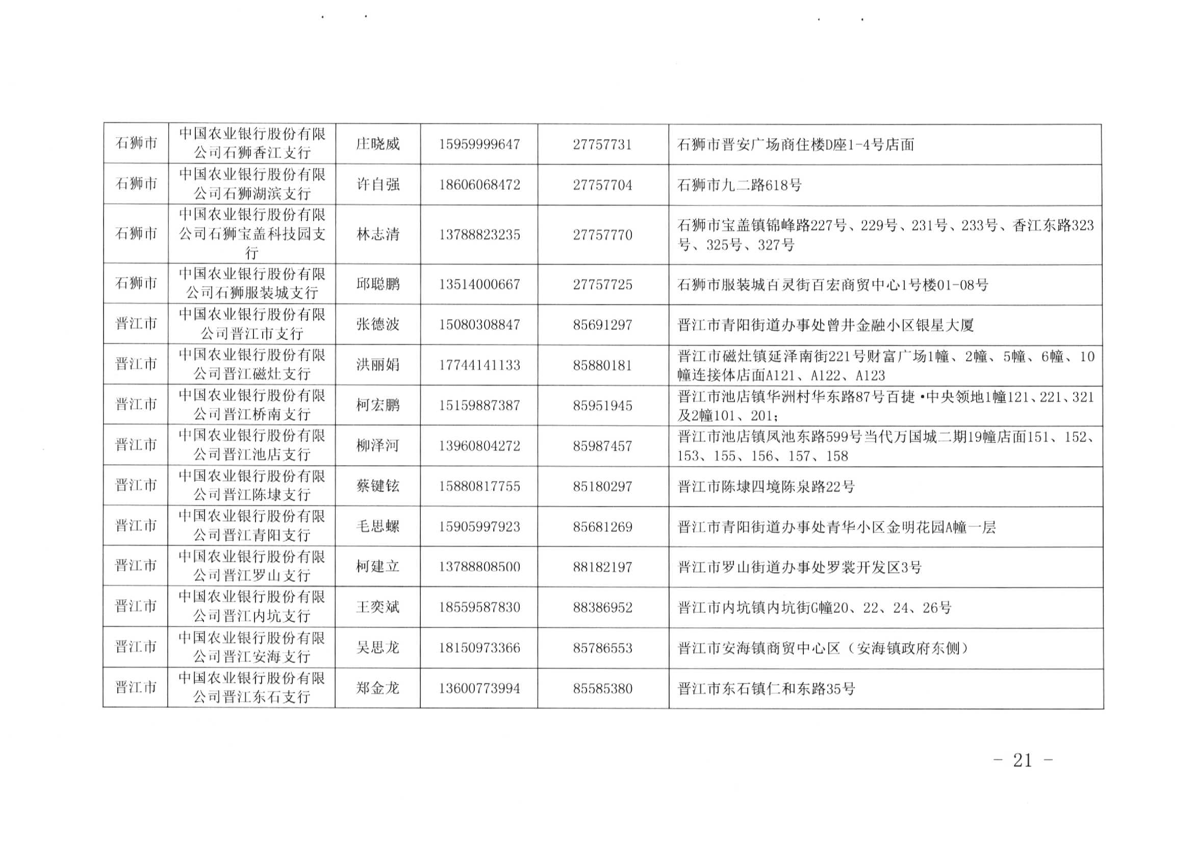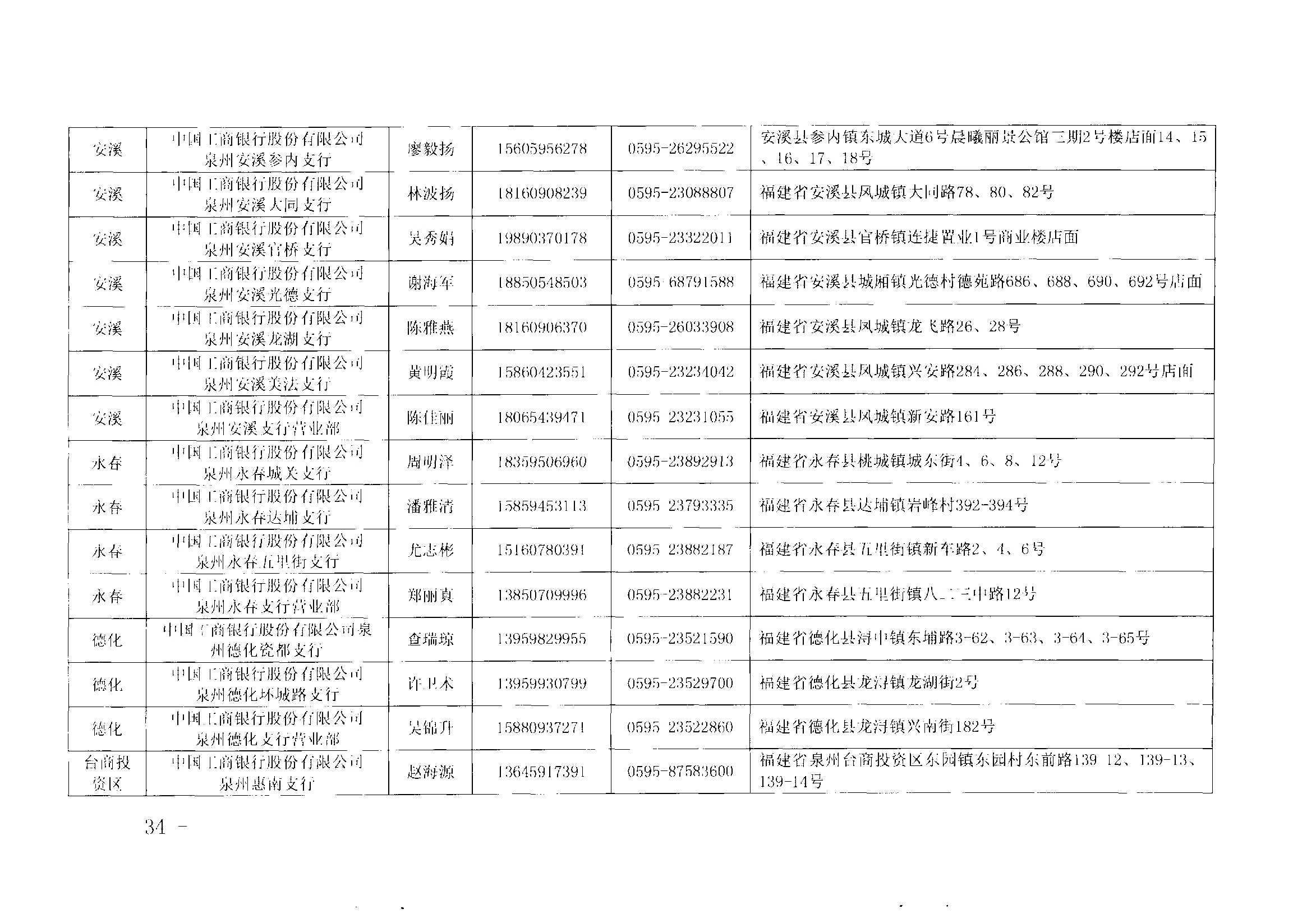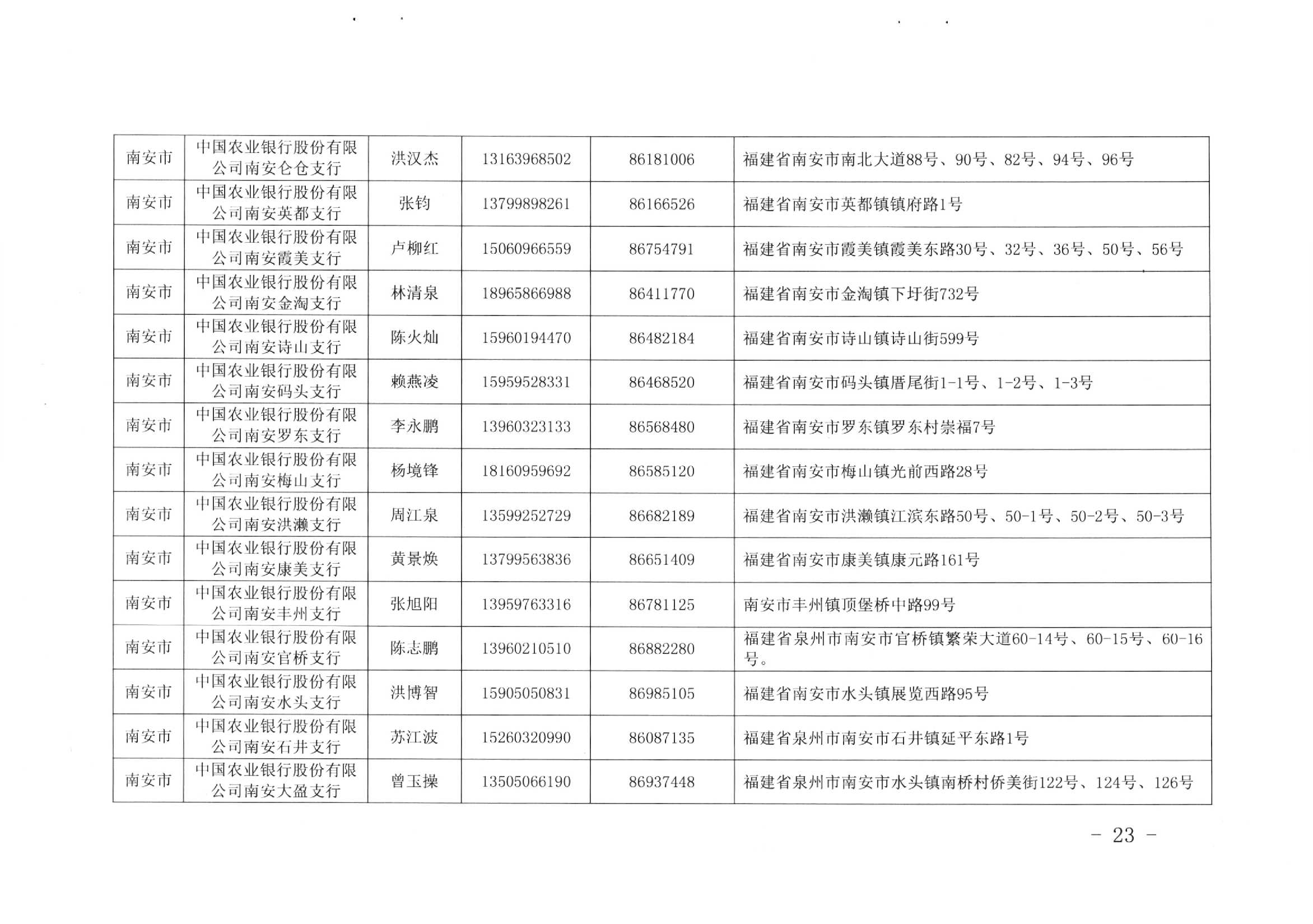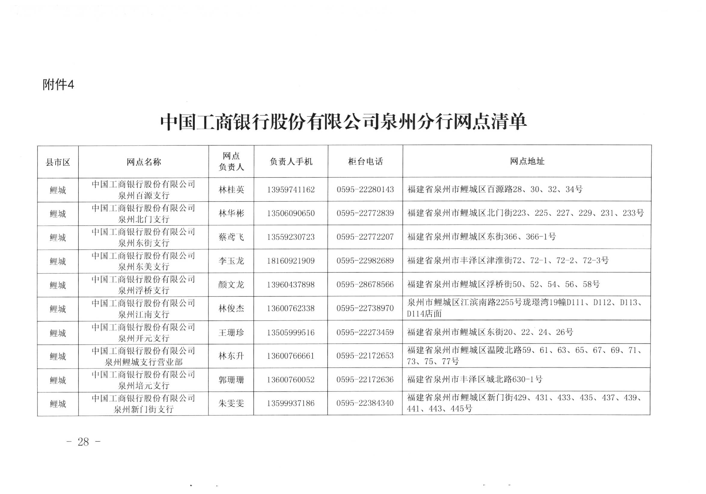 中国农业银行泉州分行、兴业银行泉州分行、中国工商银行泉州分行。