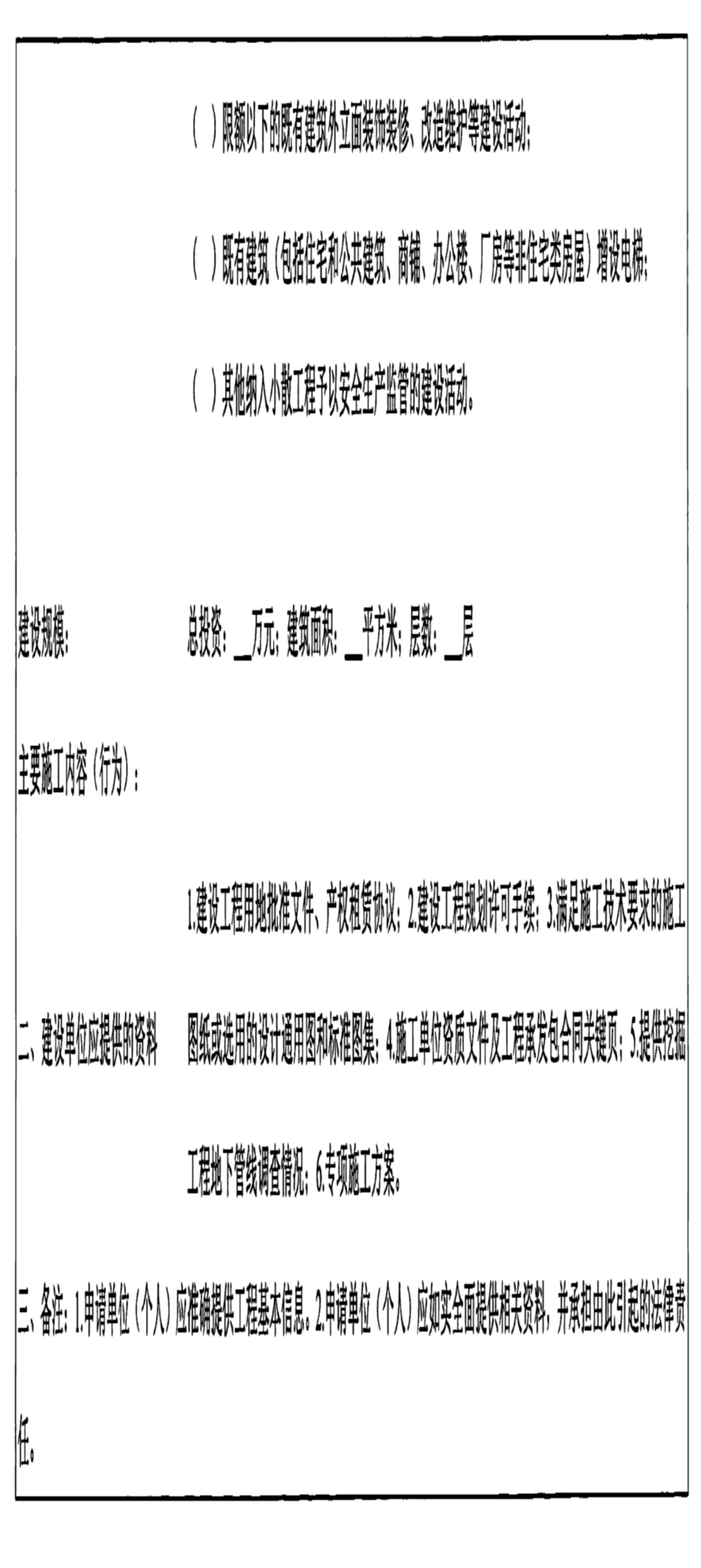 (三)村(社区)、园区或物业服务企业开展信息登记时,应当对建设单位提交的信息登记材料进行形式审查。对信息登记材料齐全且符合登记规定的,立即予以登记;信息登记材料不齐全或不符合登记规定的,应当一次性告知补正事项,符合要求后立即予以登记。同时,应通过签署安全生产告知书(附件3)和安全生产承诺书(附件4)等方式,督促引导建设单位按照本细则落实首要责任。