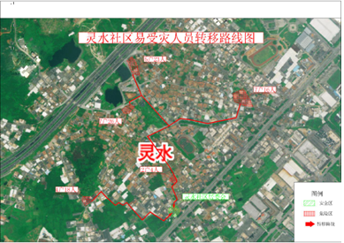 社区居民接到转移信号后,必须迅速按预定路线转移。各角落在汛前拟定好转移路线,汛期抢险救灾组必须指派组员经常检查线路上是否出现异常,如有异常,则及时修补或改变路线,以免在转移路上出现险情。转移路线避开跨河、跨溪或易滑坡地带(详见附图2)。