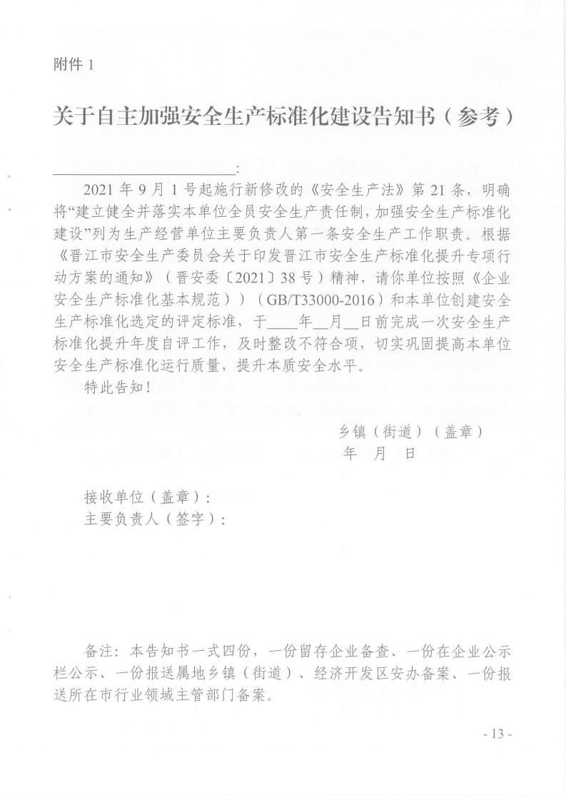 附件:1.关于自主加强安全生产标准化建设告知书(参考)