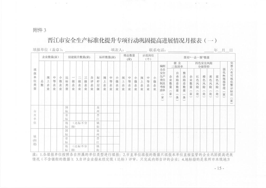 3.晋江市安全生产标准化提升专项行动巩固提高进展 情况月报表(一)