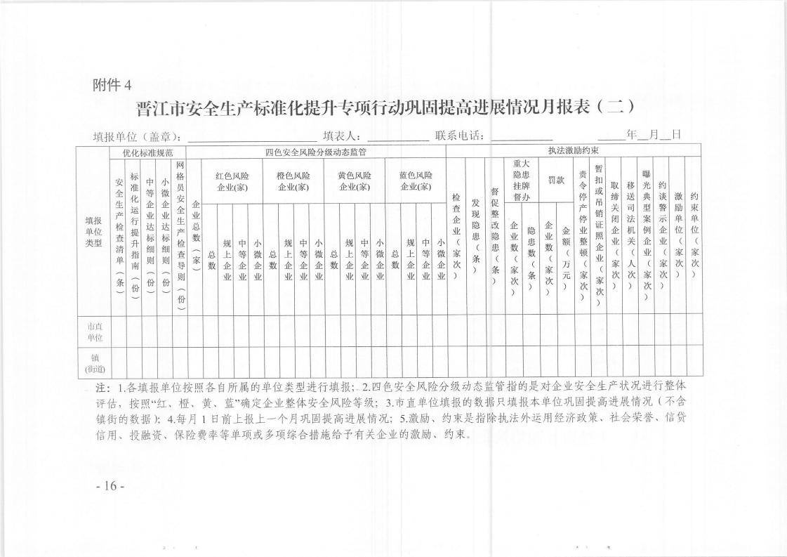 4.晋江市安全生产标准化提升专项行动巩固提高进展 情况月报表(二)