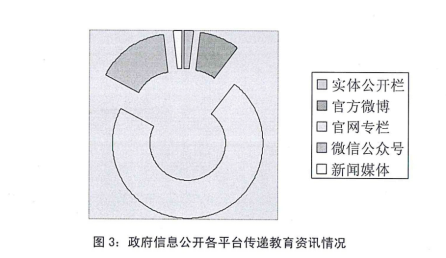 我局政务信息公开渠道有市政府门户网站的“晋江市教育局”专栏、政府公报、微信公众号、官方微博、局政务公开栏以及新闻媒体等,信息公开形式快捷、高效。2018年我局在门户网站上公开教育资讯3951条、其中发布教育新闻1959条、公告公示信息948条,学校党建信息729条,教育通知6条,便民服务信息31条,学生资助信息21条,人才引进信息6条,廉政建设类信息108条,教育督导类信息141条,教育法规类信息2条;在局政务实体公开栏上公开信息102件,通过新闻媒体发布100余条,通过微博发布471条,通过微信发布856条教育资讯(见图3)。