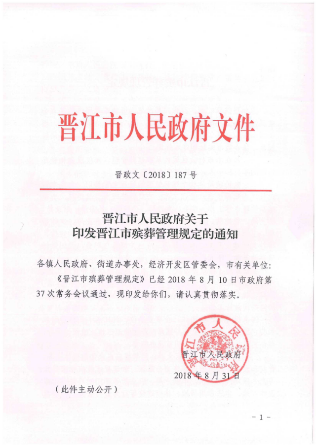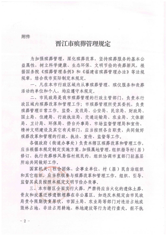 附件:1.晋江市人民政府关于印发晋江市殡葬管理规定的通