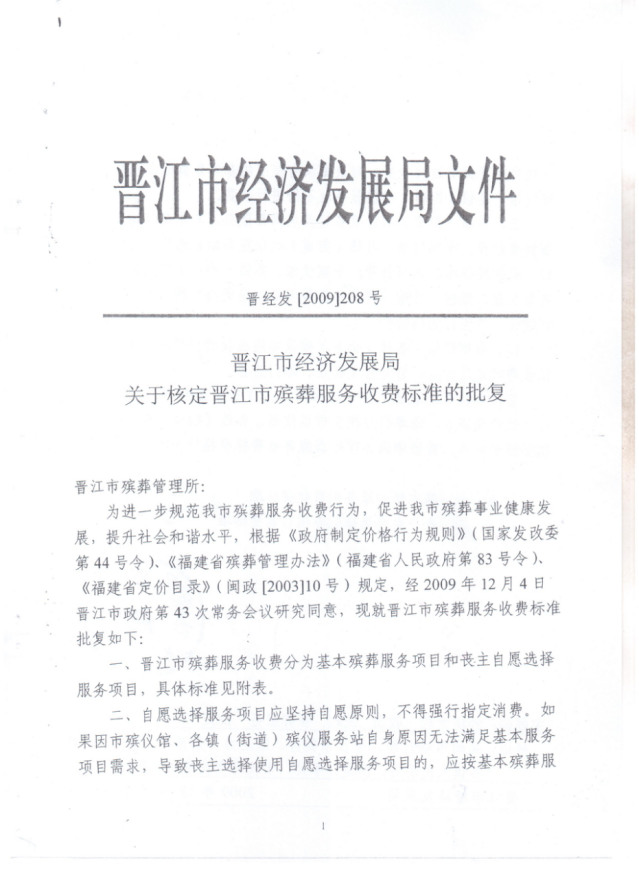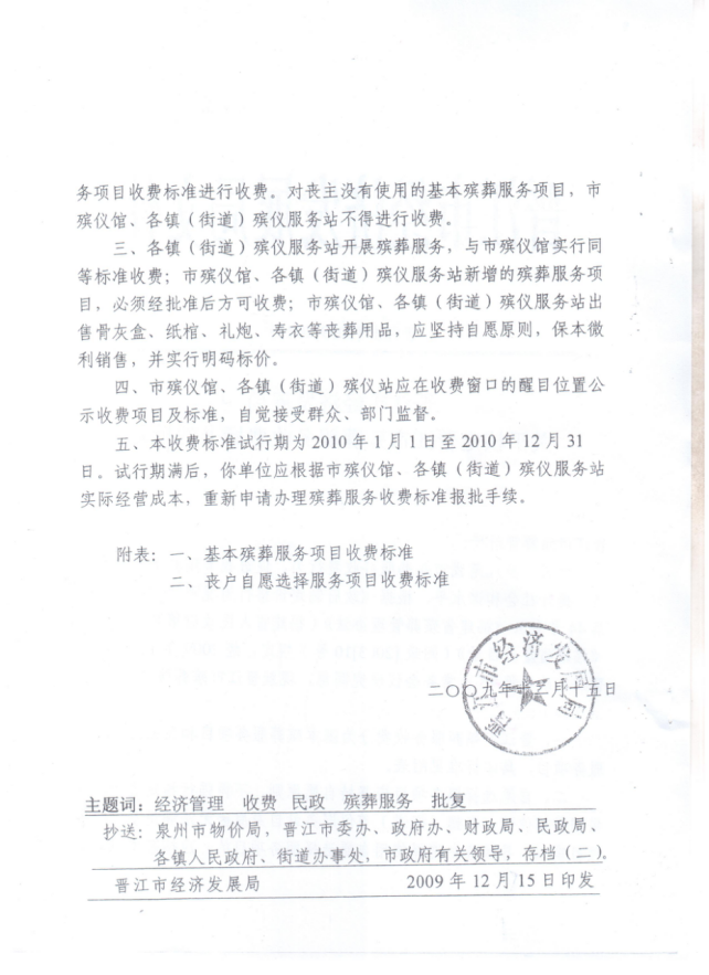 2.晋江市经济发展局关于核定晋江市殡葬服务收费