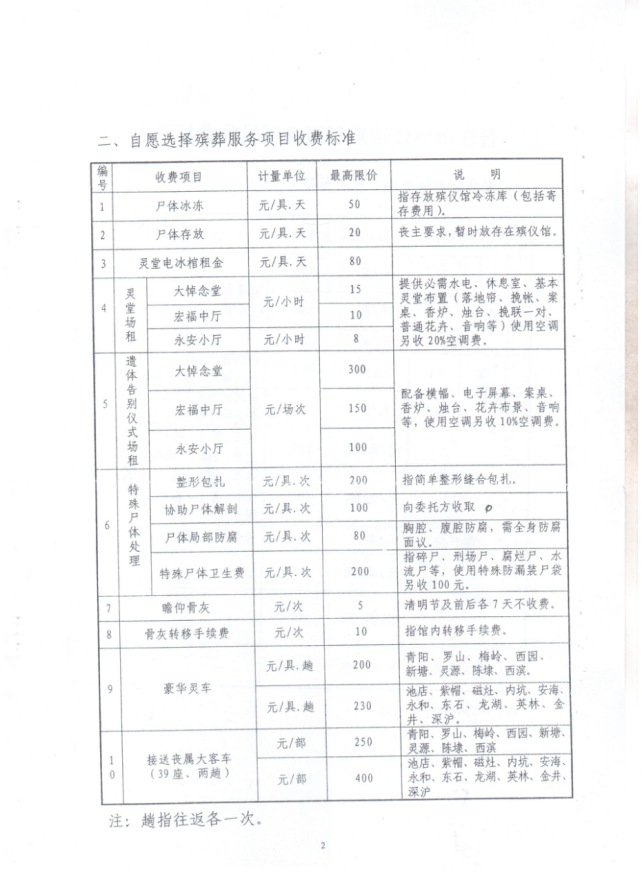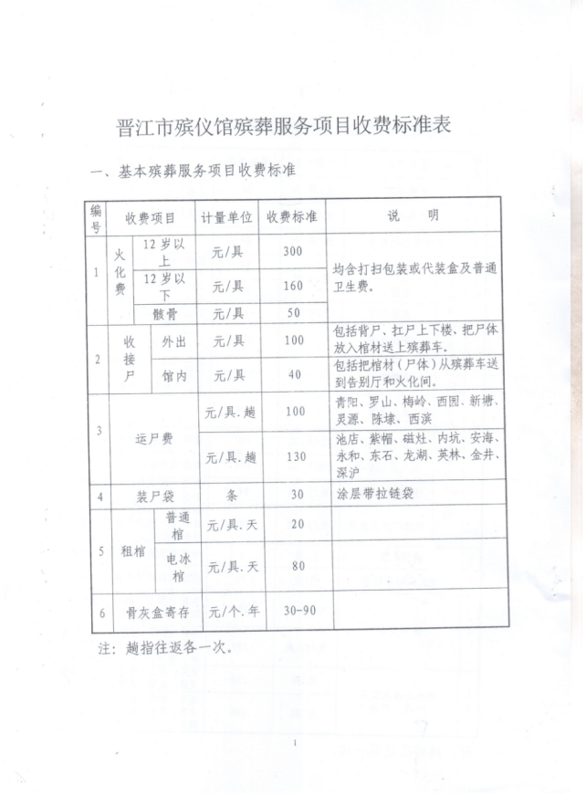 二、服务站要严格执行晋江市经发局制定的殡葬服务标准收费,不乱收费。