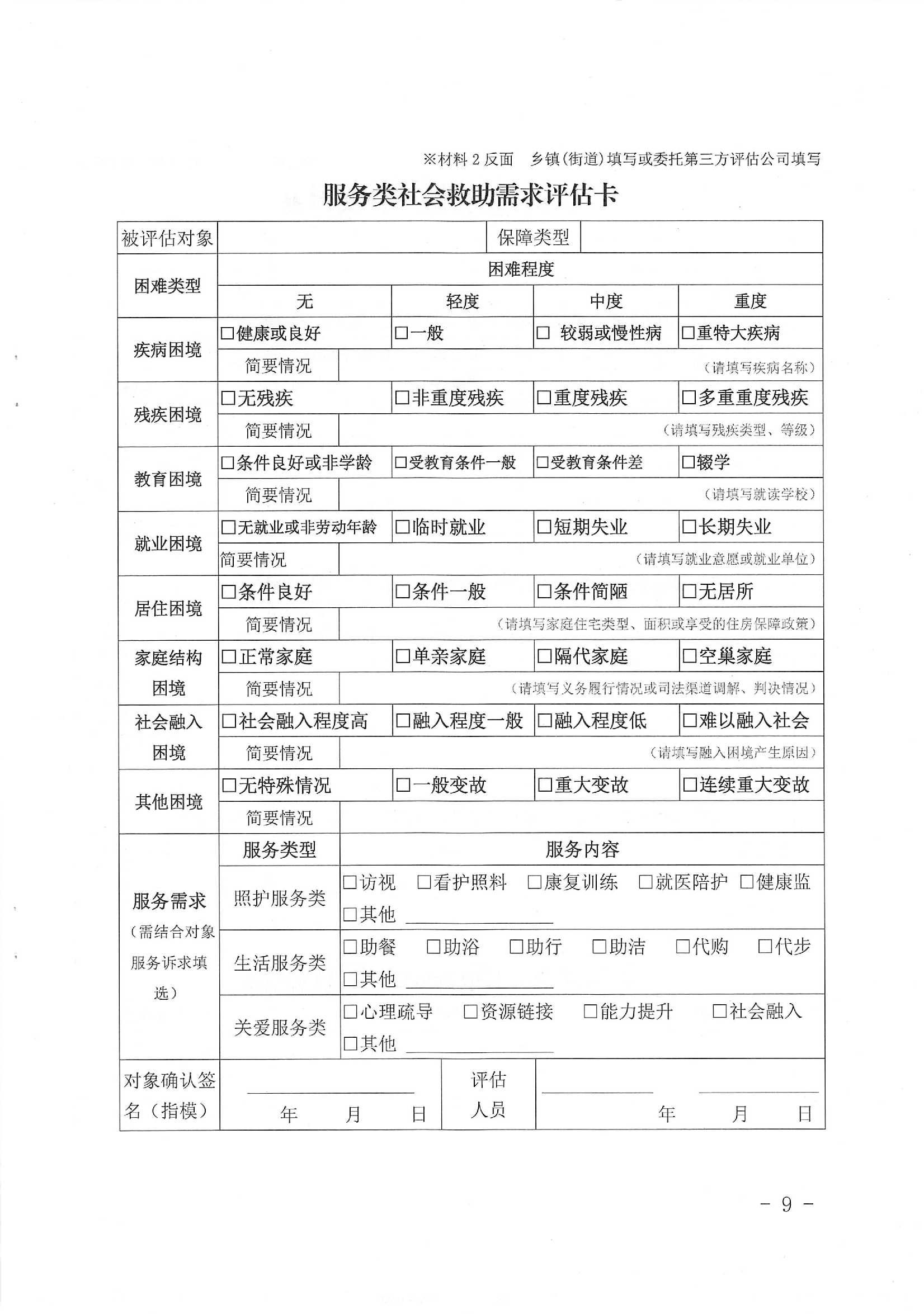 备注:申请人或家属须如实提供情况,评估方需如实填写。任何一方反映的情况与事实不符,评估结论即无效,不能作为申请补助资金的依据。本表格一式三份,市镇村各执一份。 |