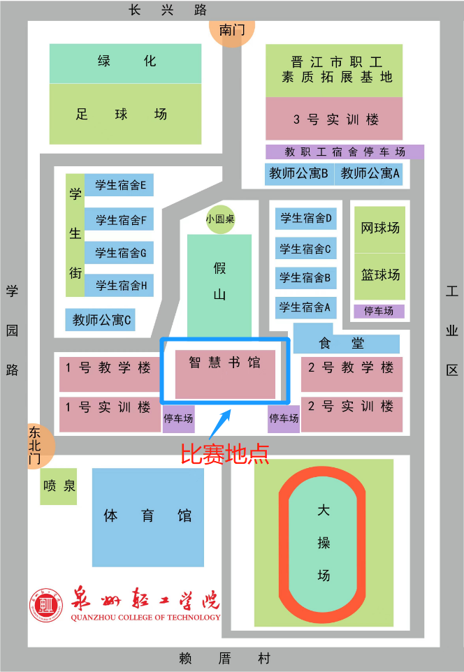 地址:泉州轻工职业学院(晋江市博览大道与学园路交叉口西北角)