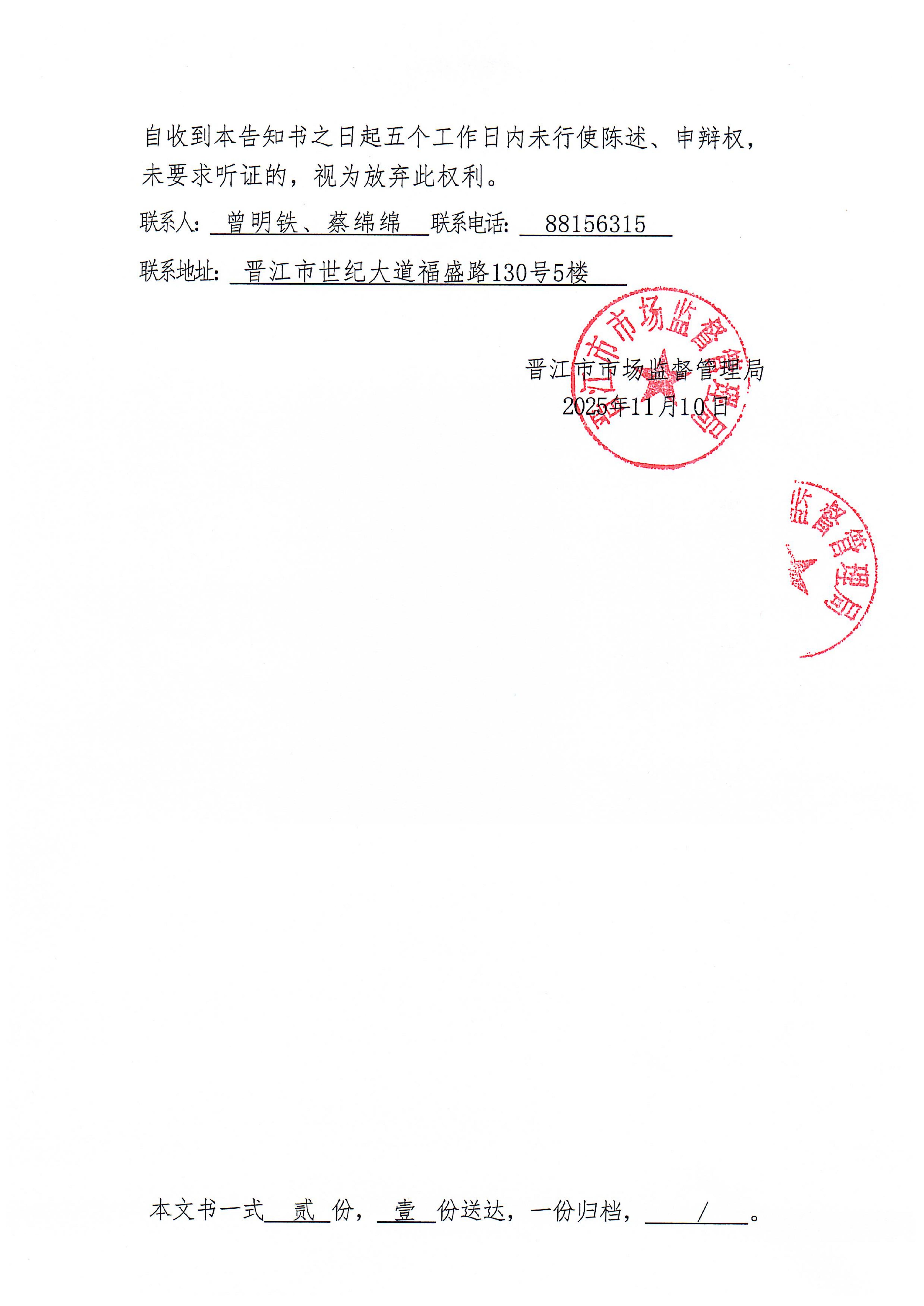 晋江市市场监督管理局行政处罚文书送达公告(晋市监罚送告〔2025〕17-111001号 不明当事人)