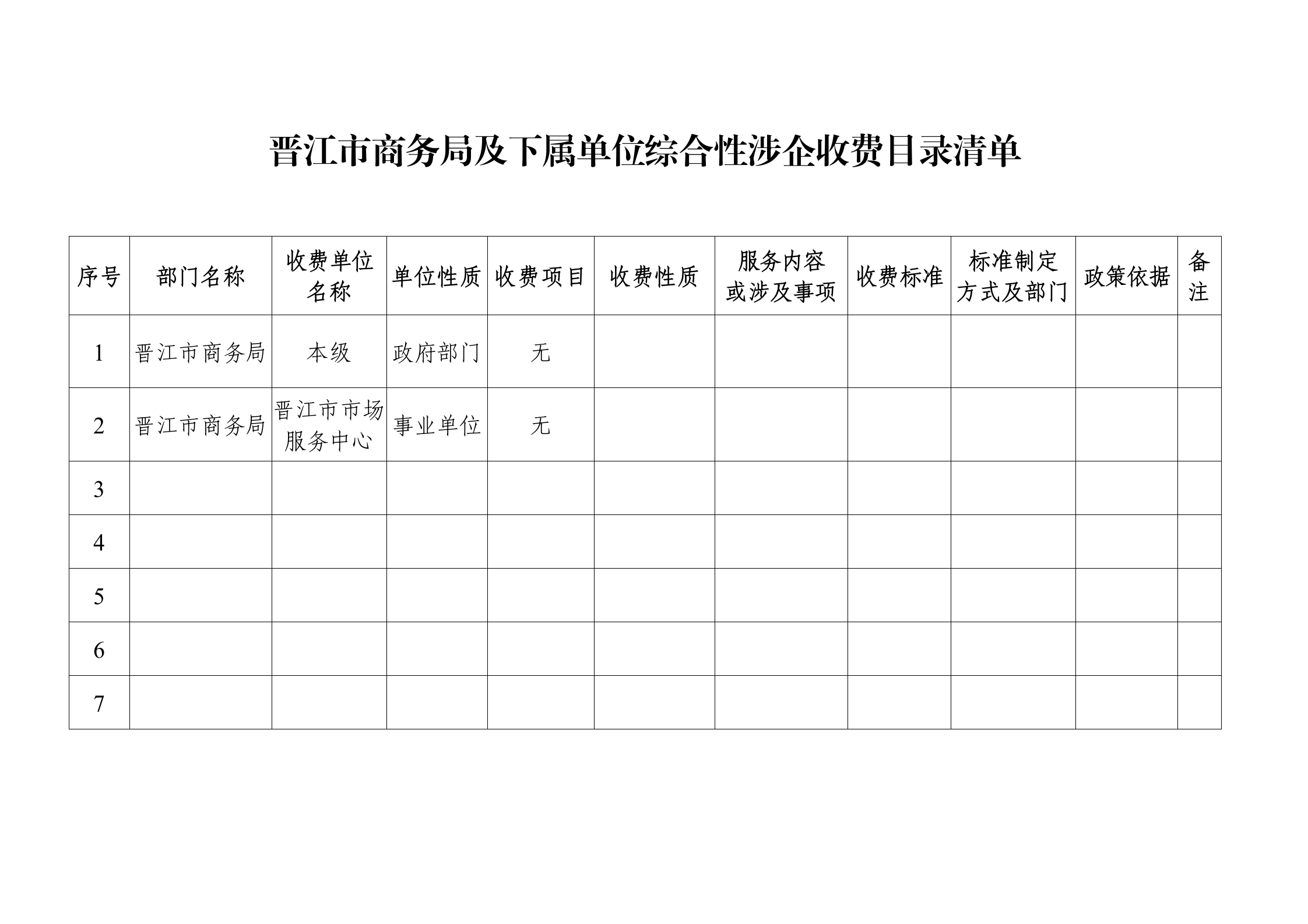 晋江市商务局及下属单位综合性涉企收费目录清单